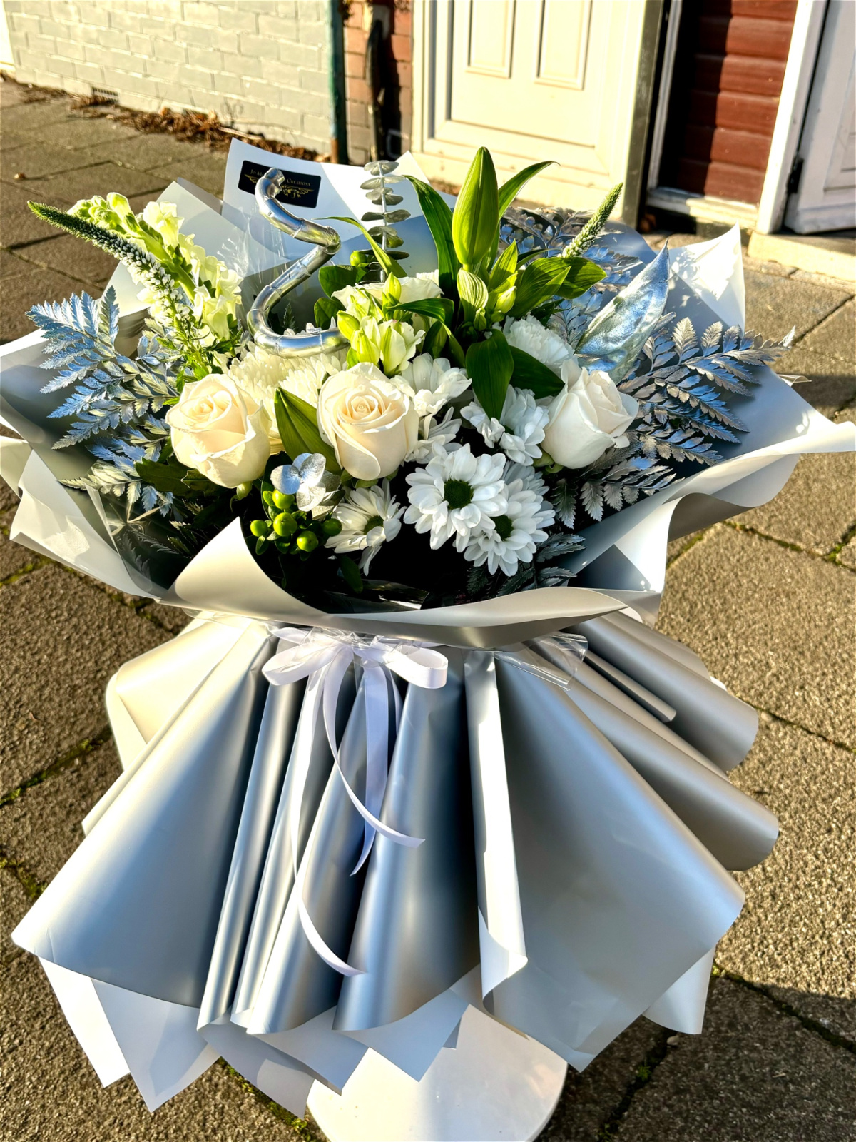 Let us create something beautifully bespoke just for you. This is a *Florist’s Choice* bouquet, thoughtfully designed in your selected colour palette or theme. The images shown are examples of our previous work and reflect the style and quality you can expect.